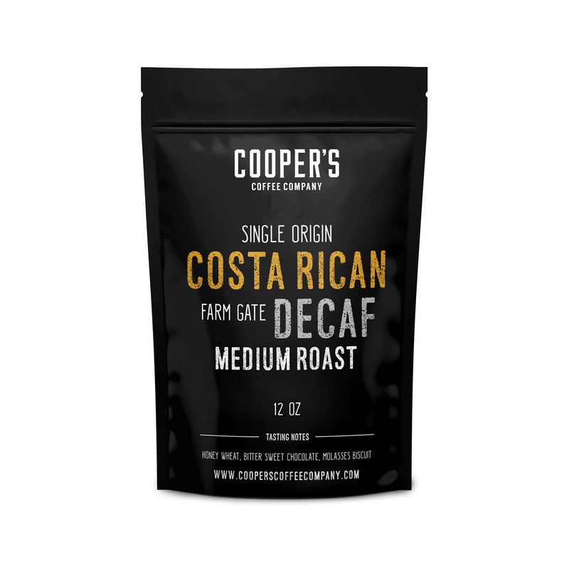 Decaf Costa Rican Coffee Medium Roast, Swiss Water Processed Decaffeinated - 12oz Bag