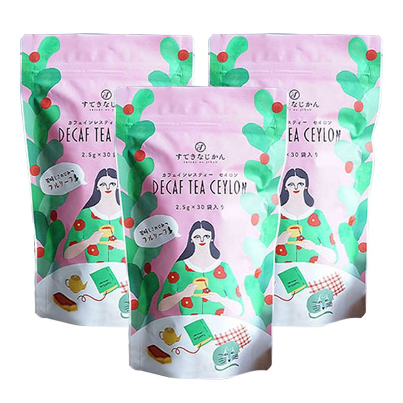 Decaf Tea Ceylon Triangular Tea Bag, 0.1 oz (2.5 g) x 30 Bags x 3 Pack Set, Total of 90 Cups, Caffeinated Tea, Unscented Tea, Full Leaf Use