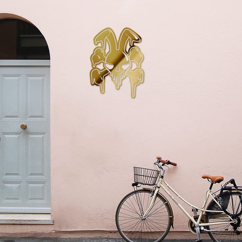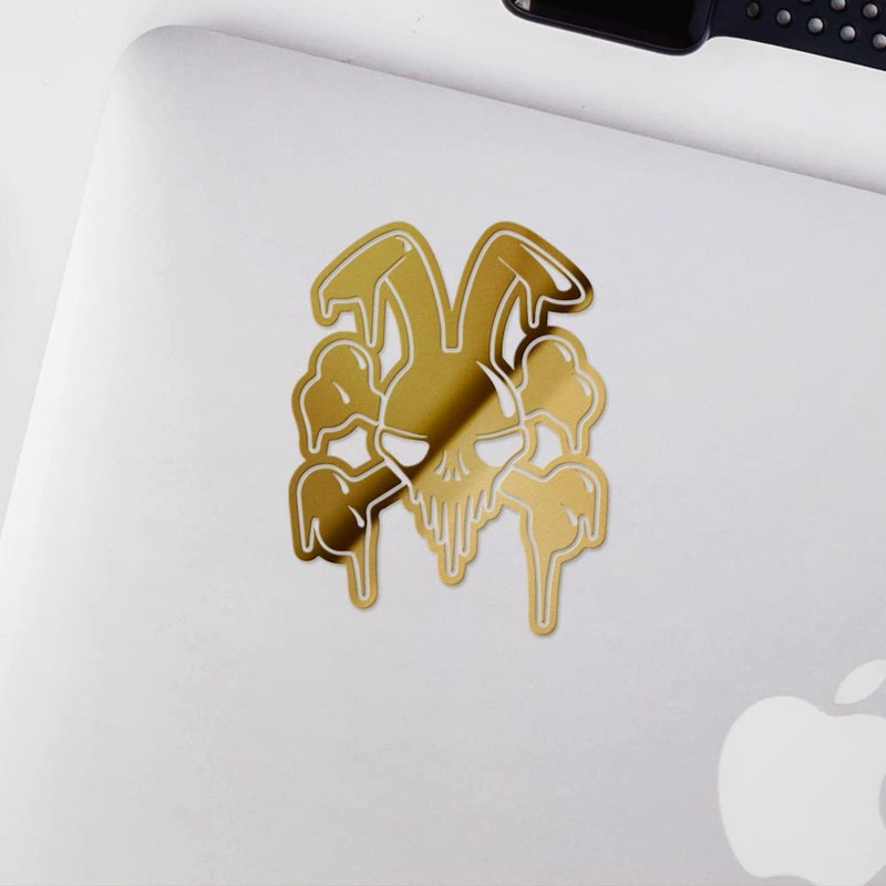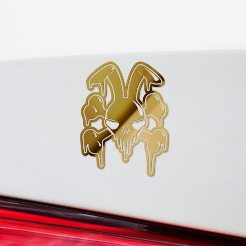 Decal Stickers of Evil Rabbit Skull Graffiti (Metallic Gold) (Set of 2) Premi...