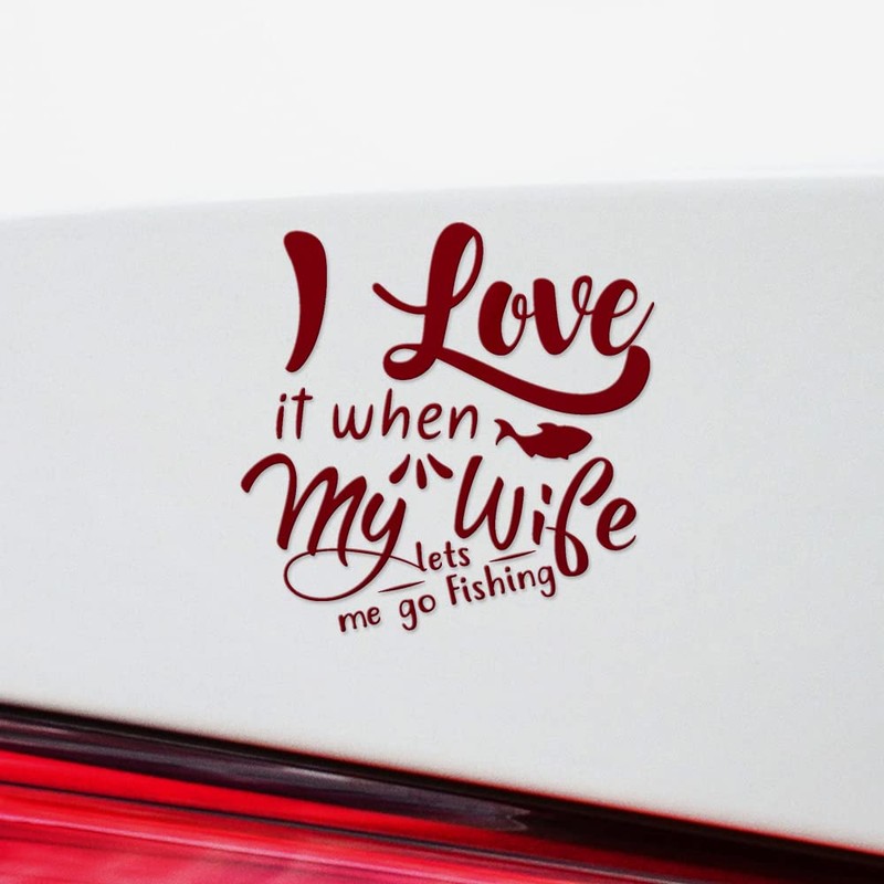 Decal Stickers of I Love It When My Wife Lets Me Go Fishing (Burgundy) (Set of 2) Premium Waterproof Vinyl Decal Stickers for Laptop Smartphone Car Dirt Bike Wall Room Mason - ANDsticf15061RE