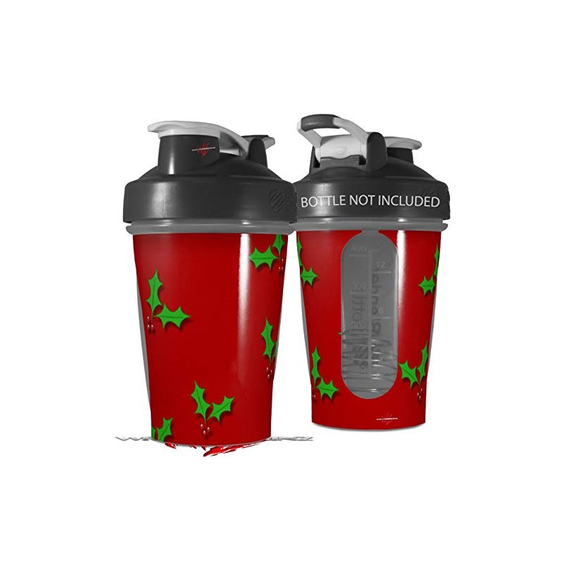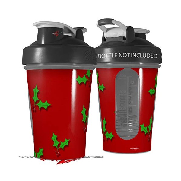 Decal Style Skin Wrap works with Blender Bottle 20oz Christmas Holly Leaves on Red (BOTTLE NOT INCLUDED)