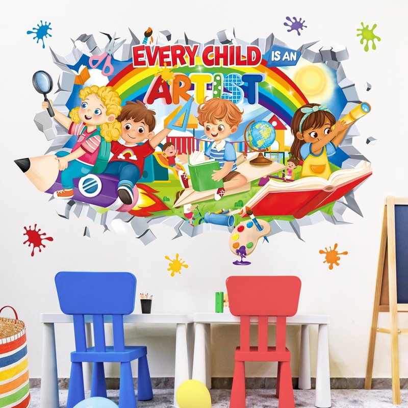 decalmile 3D Rainbow Inspirational Quotes Wall Decals Every Child is an Artist Pencil Splatter Wall Stickers Kids Playroom School Library Classroom Wall Decor