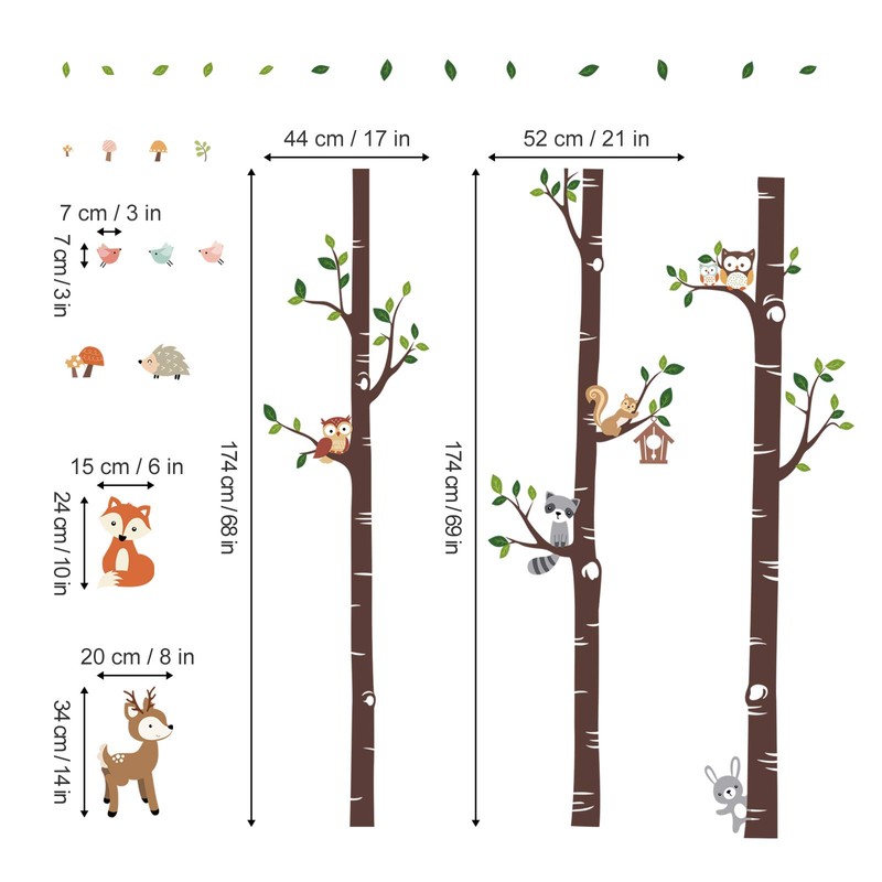 This woodland animals wall sticker can bring you a vivid spring hint with big green trees. Lovely deer, smart squirrel and small birds makes your wall more colorful.