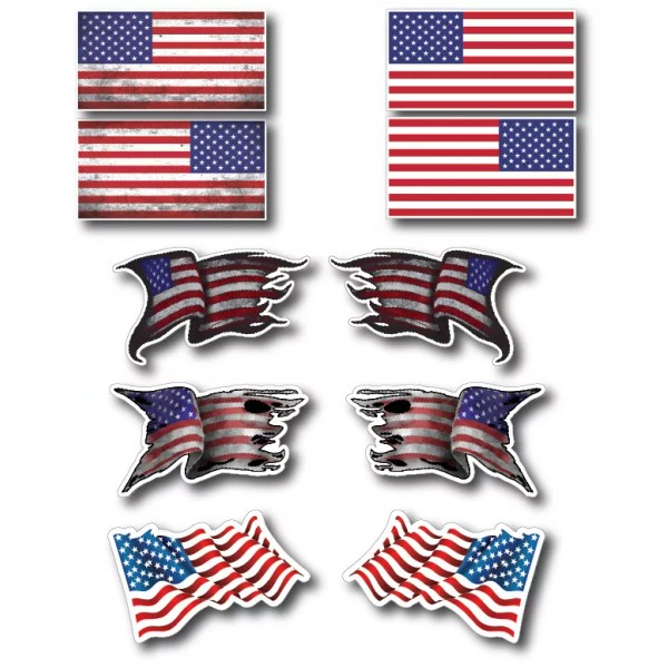 You are buying a 10 pack of ORIGINAL DESIGN American Flag decals!!! They are great for helmets, hard hats, coffee cups, laptops, windshields, bumpers, pretty much any clean, smooth surface! Each decal is printed on 3M high quality vinyl using industry leading eco-solvent ink and meticulously cut to shape using state of the art cutting technology. Perfect for Yeti mugs! They are dishwasher sage!