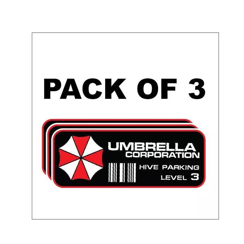 Decals by Haley 3pk Umbrella Corporation Hive Parking Level 3 Resident Evil Zombie Decal Sticker