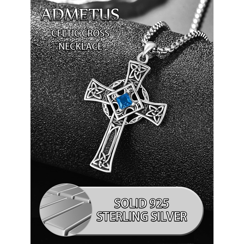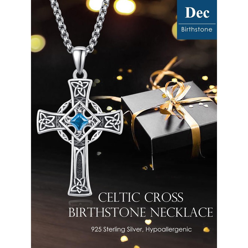 December Birthstone Cross Necklace Sterling Silver Celtic Cross Necklace for Men Blue Zircon Cross Pendant Irish Jewelry December Birthstone Gifts for Men