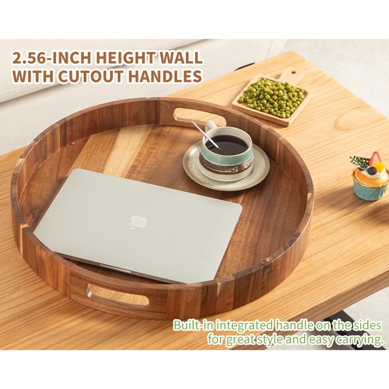 - 【SUPER LARGE SPACE】20INCH dia circular tray; there is ample space to store various items. Plus, It is a breeze that brcarrying multiple items from the kitchen to the living room, from indoor to outdoor.