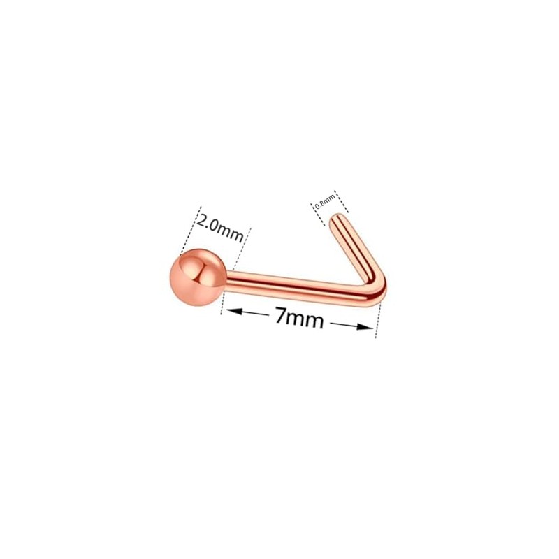 - ✨【Total 6 PCS Real Nose Studs, 20gauge】The small nose studs pack comes with 6 PCS Lshaped nose studs/nose ring with ball. Nose studs dimensions: 20gauge (0.8mm), length 7mm.