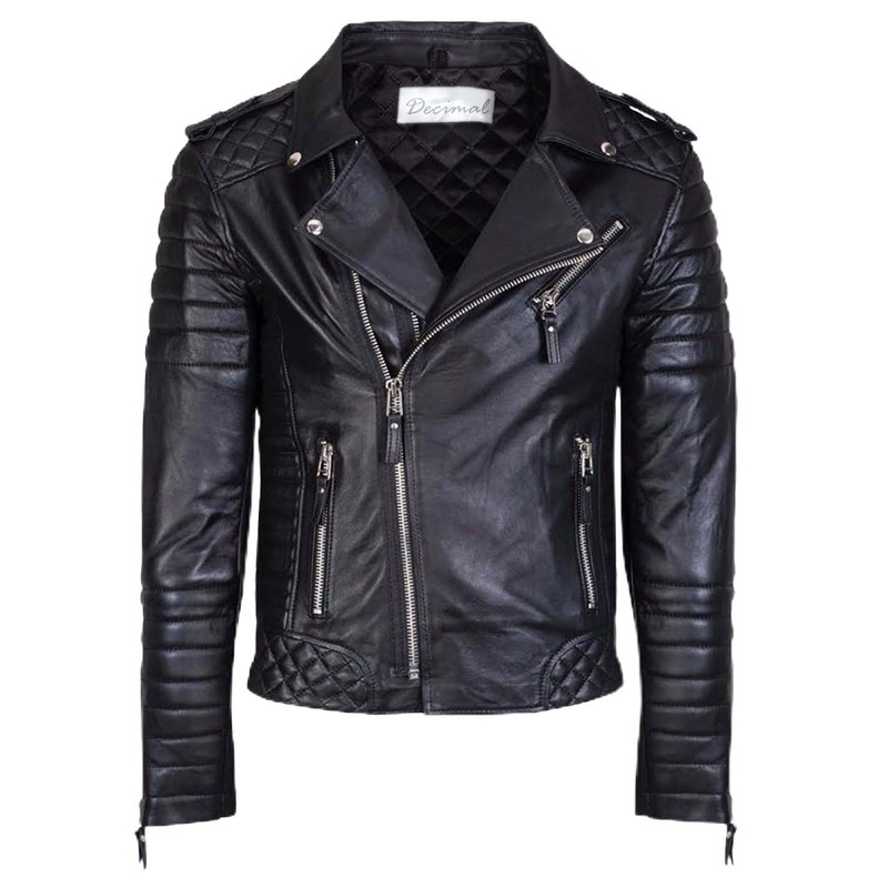 DECIMAL Men's Black REAL Lambskin Leather Biker Jacket VINTAGE GENUINE MOTORCYCLE JACKETS FOR MEN (US, Alpha, X-Large, Regular, Regular, C BLACK)