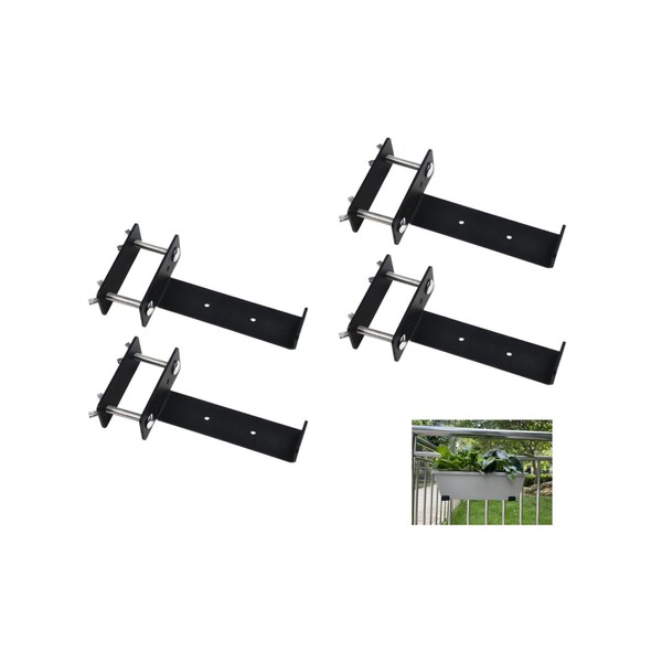 Deck Railing Planter Box Brackets, Deck and Fence Rail Universal Planter Box Outdoor Hanging Brackets, Window Box Brackets, Fence Flower Box Brackets, Heavy Duty Iron (4 Pack 6" Black)
