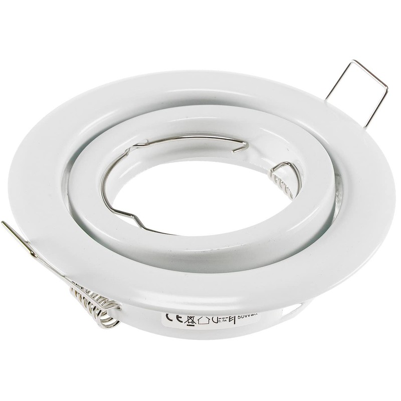 - Recessed ceiling spotlight in glossy white finish for 50 mm reflector spotlights, lamps, bulbs and LED modules.