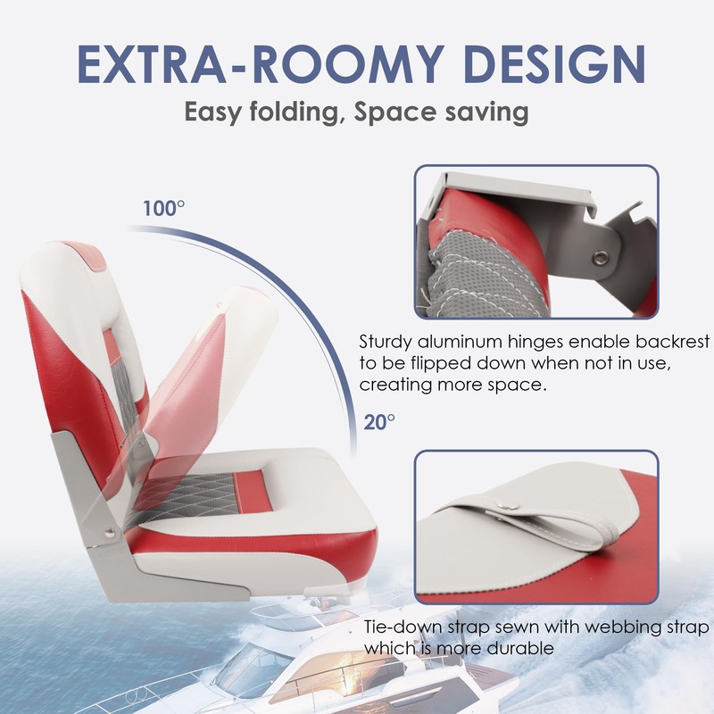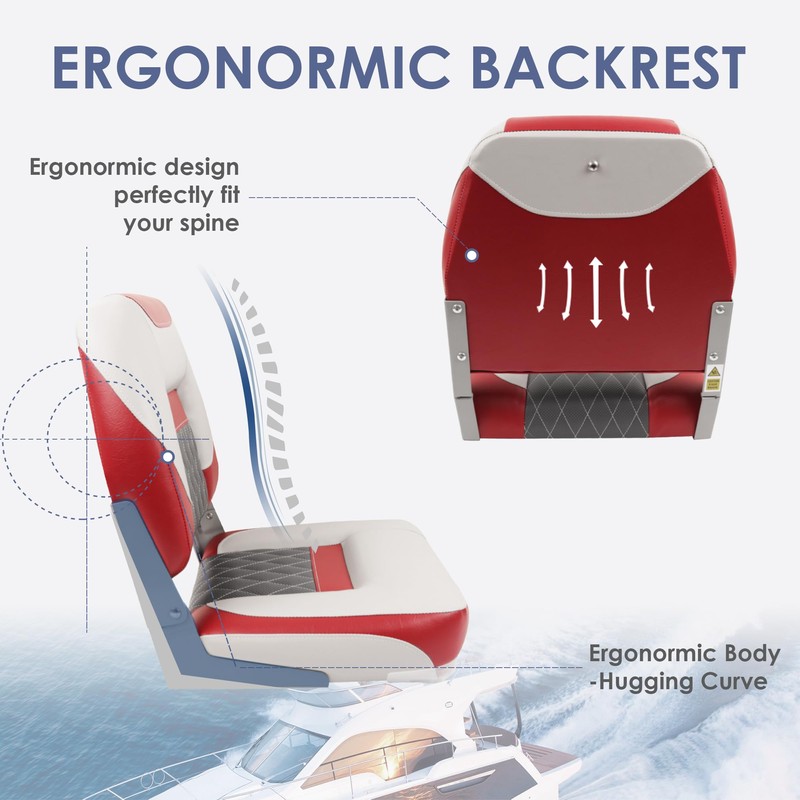 - ERGONOMIC FEATURES - According to the ergonomic design, our boat seat will reduce your back and vertebrae pain when you are sitting for a long time. The low backrest perfectly fits to the curve of human spine can give you strong support and help you release back pressure.