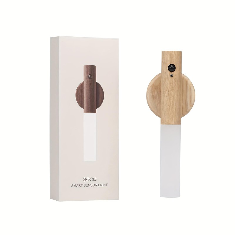 DeckTok Motion Sensor Night Lights with Magnet, Rechargeable Sensor Night Lights Indoor, Portable Stairway Night Lights Wooden Wall Sconce Battery Powered Cabinet Lights for Home
