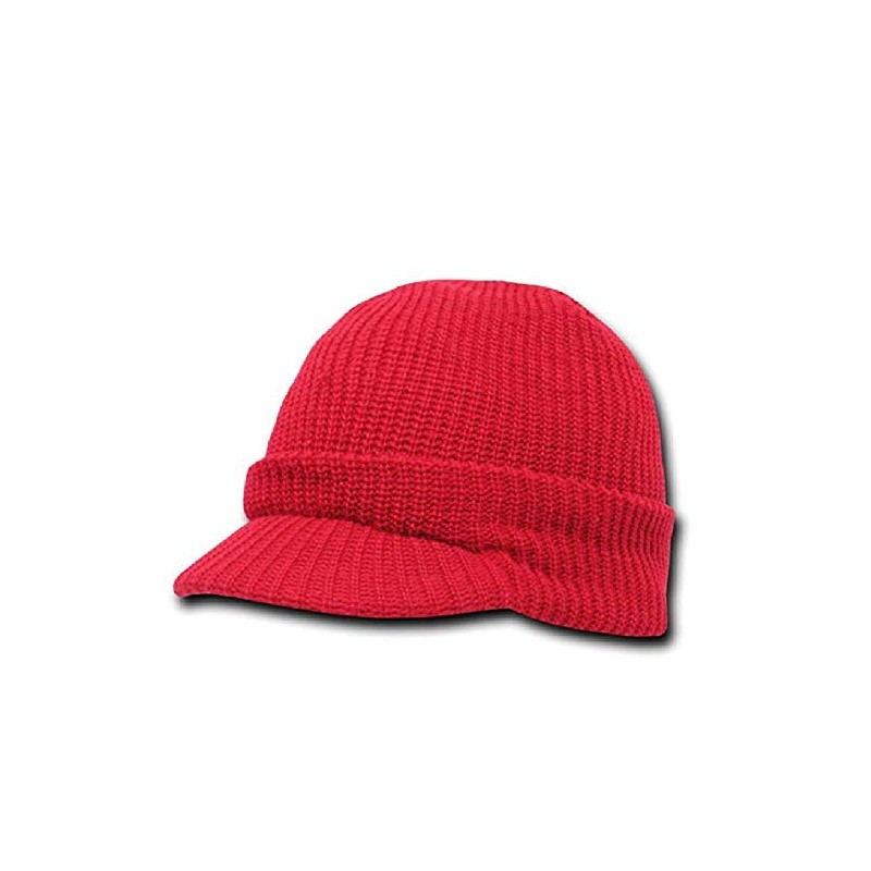 DECKY Solid Red Radar Billed Beanie Stocking Cap Hat Winter Military