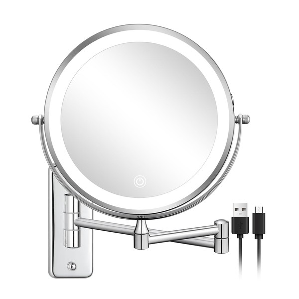 - Rechargeable Lighted Makeup Mirror - Wall Mounted Makeup Mirror is built in 2000mAh rechargeable battery, type-C cable is included (charger is not included). Large capacity lithium battery provides longer service life, so you don't need to replace the battery frequently.