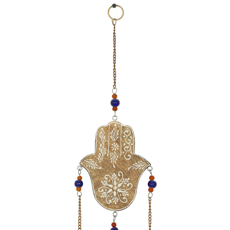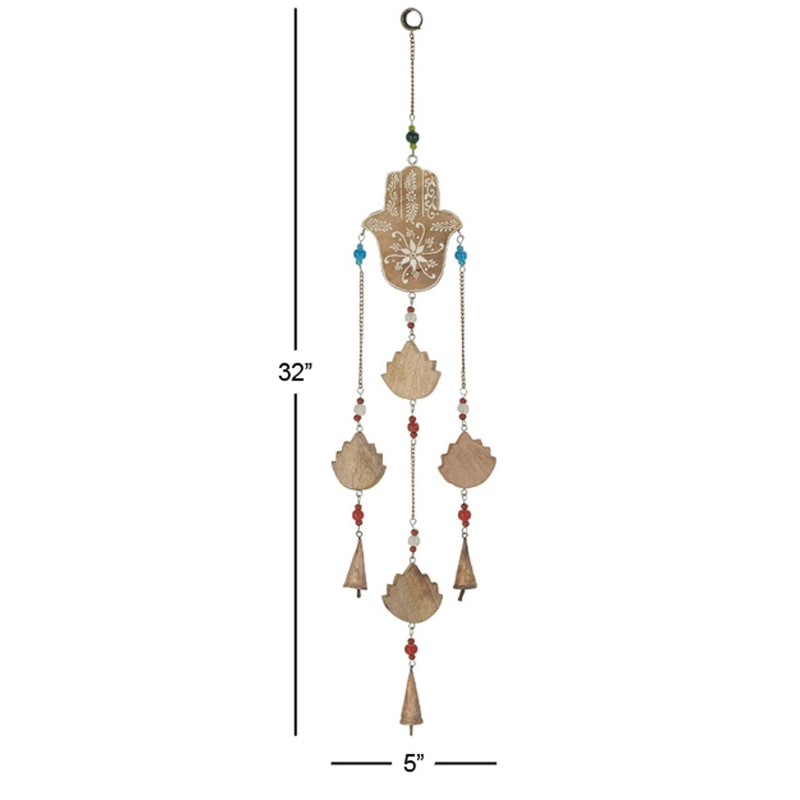 - FEATURES BUDDHA WINDCHIME: This serene windchime features a stunning hand-painted "Hamas Hand" design and lotus flower shadow wood carvings