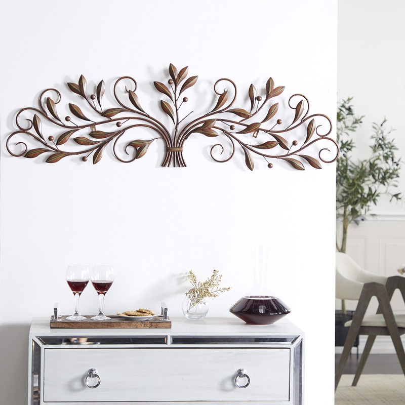 Deco 79 63005 Metal Leaf Wall Decor, 47 by 15-Inch, Brown