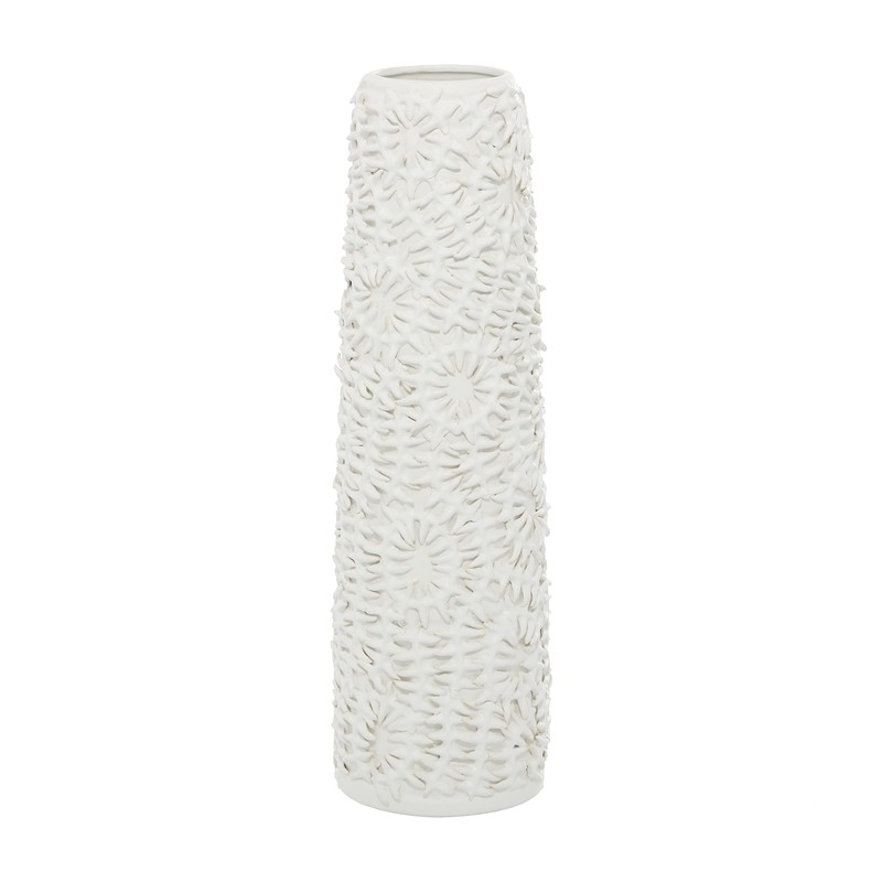 Deco 79 Ceramic Floral Embossed Vase, 6" x 6" x 21", White