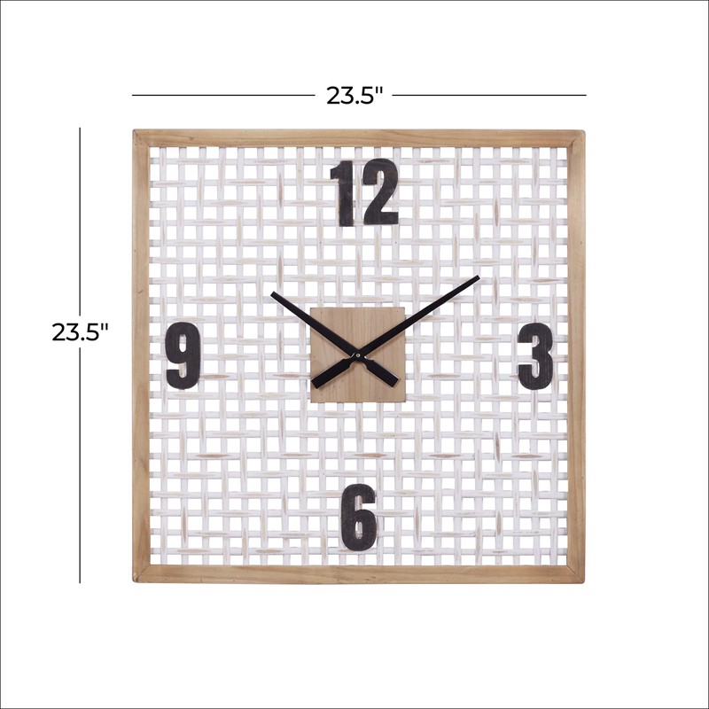 - Square farmhouse wall clock measures 23.5"L x 1.5"W x 23.5"H and weighs 2.3 lbs.