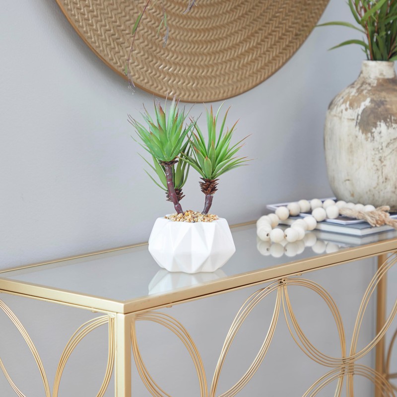 Deco 79 Faux Foliage Agave Artificial Plant with Realistic Leaves and White Ceramic Pot, 8" x 7" x 11", Green
