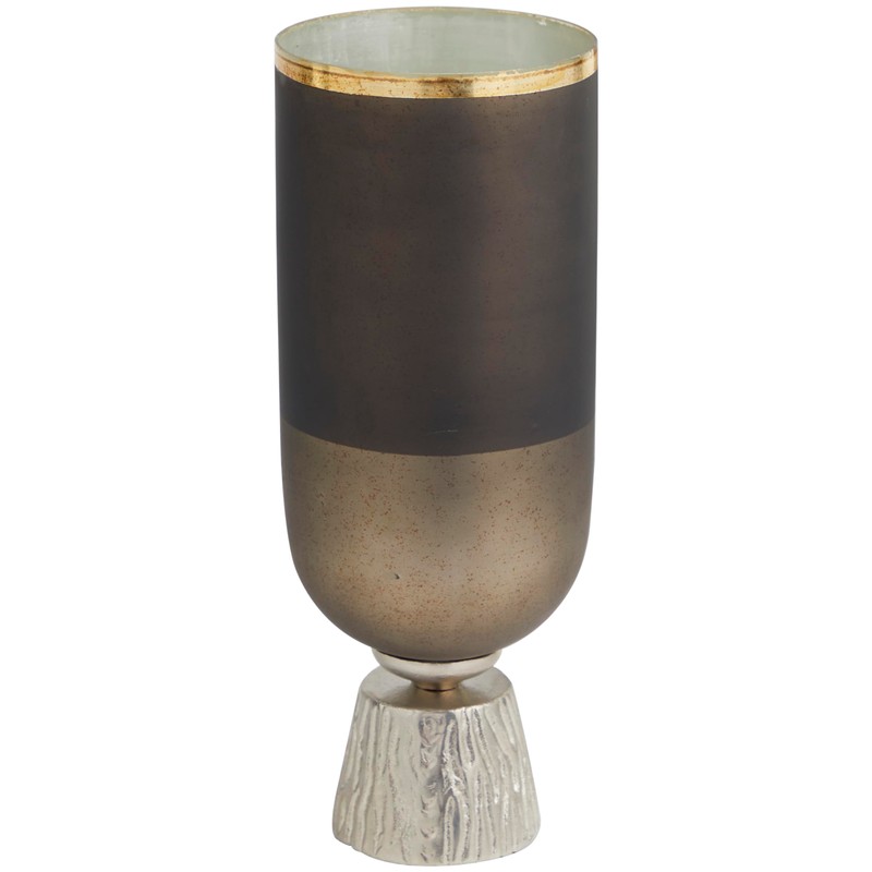 Deco 79 Glass Colorblock Candle Holder with Gold Accents and Textured Silver Base, 6" x 6" x 16", Bronze