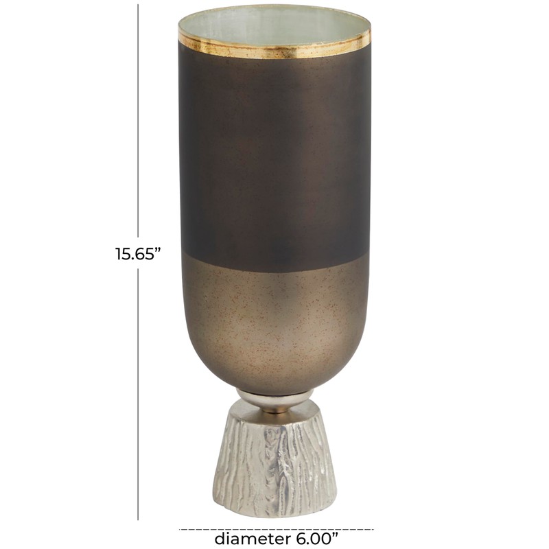 Deco 79 Glass Colorblock Candle Holder with Gold Accents and Textured Silver Base, 6" x 6" x 16", Bronze
