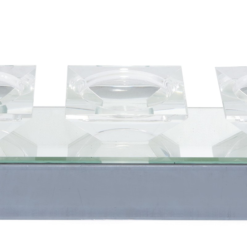 - MADE OF GLASS: A decorative candle holder set made from wood, mirror and crystal glass