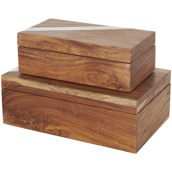 Deco 79 Mango Wood Decorative Box Decorative Keepsake Boxes with Silver Diagonal Stripes, Set of 2 Storage Boxes, Brown