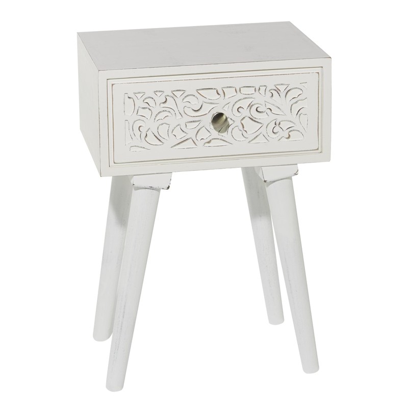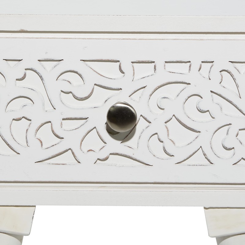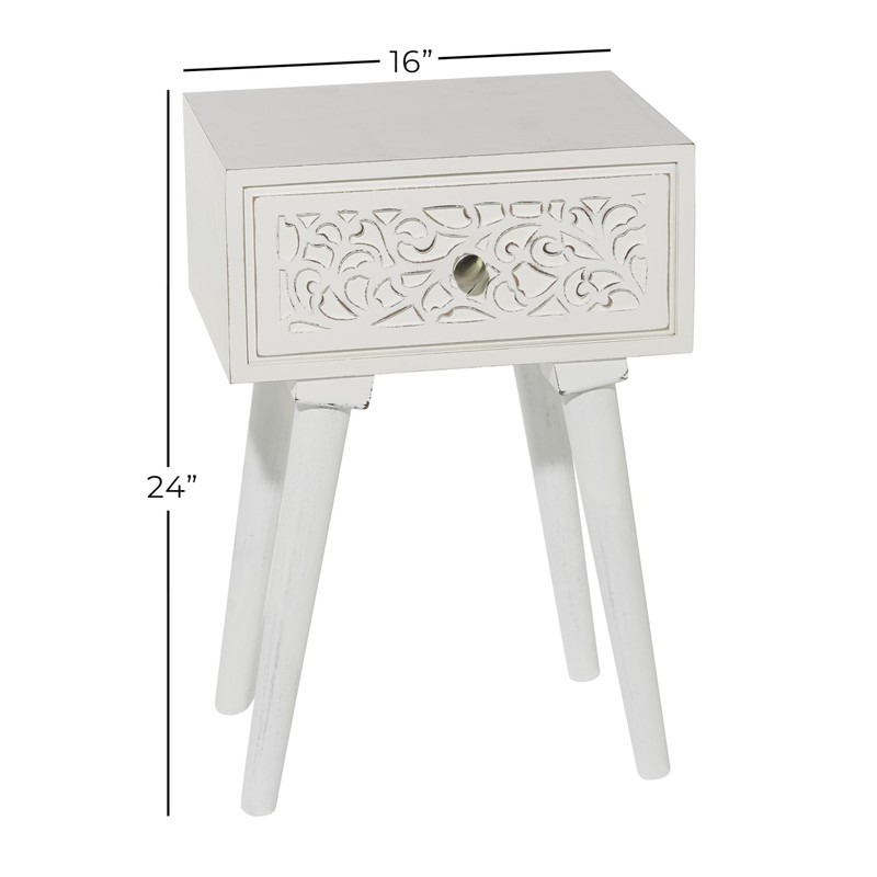 Deco 79 Mango Wood Scroll Side End Accent Table Intricately Carved Single Drawer End Table, Side Table 16" x 13" x 24", White
