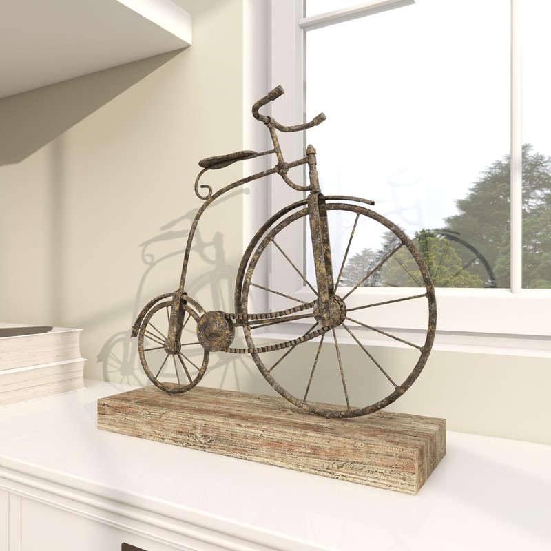 Deco 79 Metal Bike Decorative Sculpture Home Decor Statue with Wood Base, Acc...