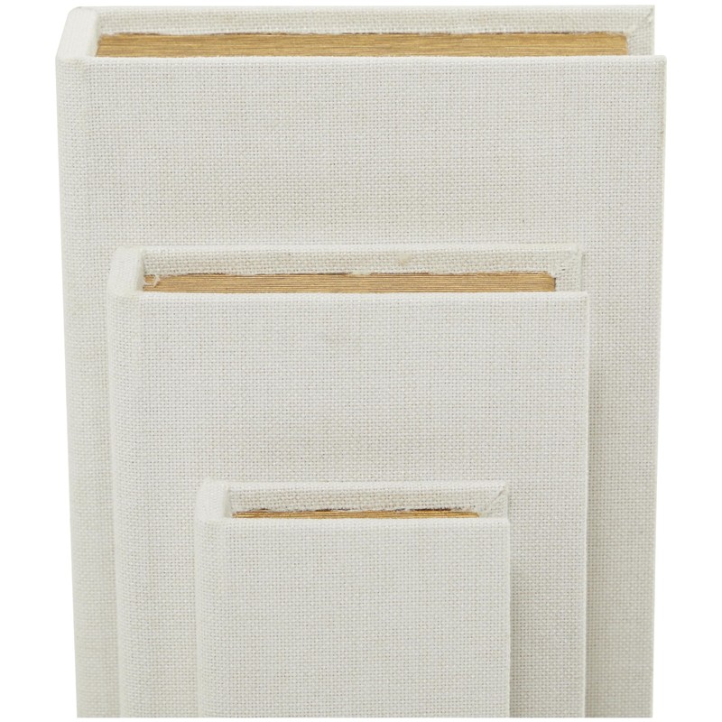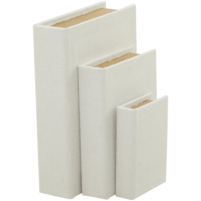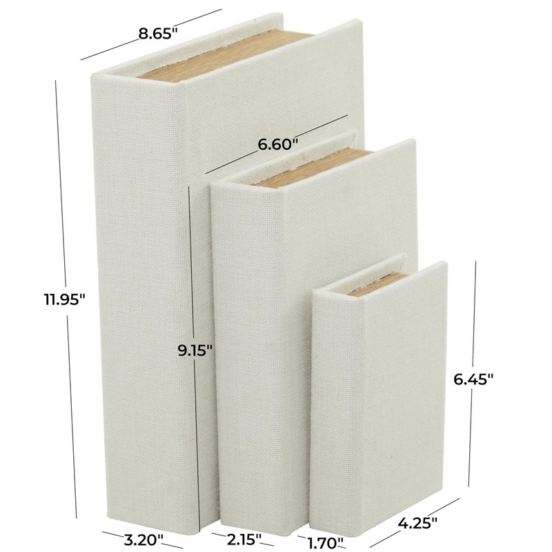 Deco 79 Linen Fabric Decorative Box Faux Storage Book Book Shaped Boxes, Set of 3 Decorative Keepsake Boxes 12", 9", 6"H, White