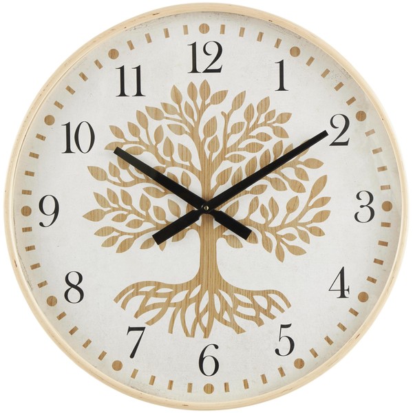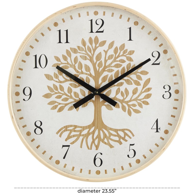 Deco 79 Wooden Tree Decorative Wall Clock Wall Clock for Home with Cream Back...