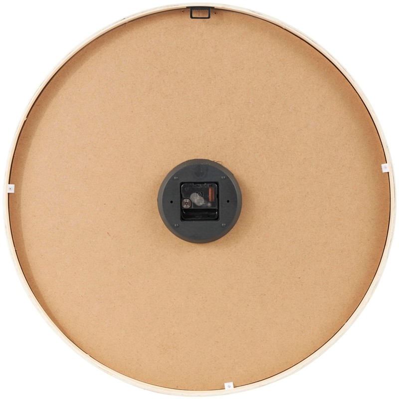 • BROWN AND WHITE OVERSIZED WALL CLOCK: This modern wall clock features a light brown wood frame with black numbers and a smooth white finish, adding a natural and contemporary touch to your interior