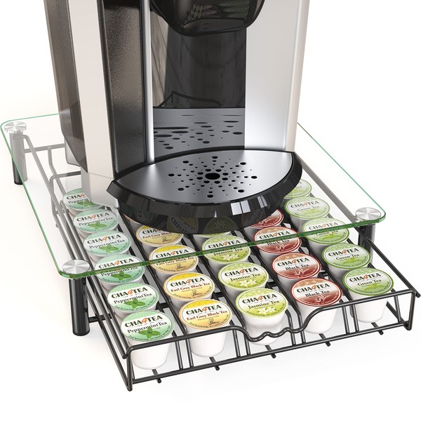 Deco Brothers Crystal Tempered Glass K-Cup Holder Drawer for 30 Coffee Pods Storage, Black