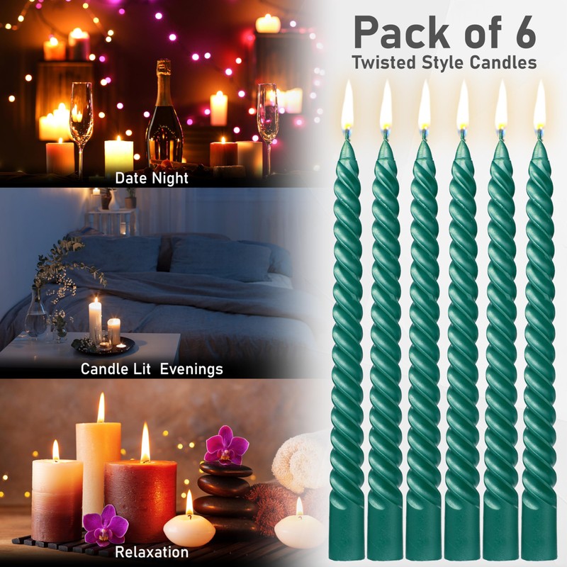 - Elevate your ambiance with our pack of 3 or 6 twisted candles, each boasting an impressive 6-hour burn time, making them perfect for candlesticks