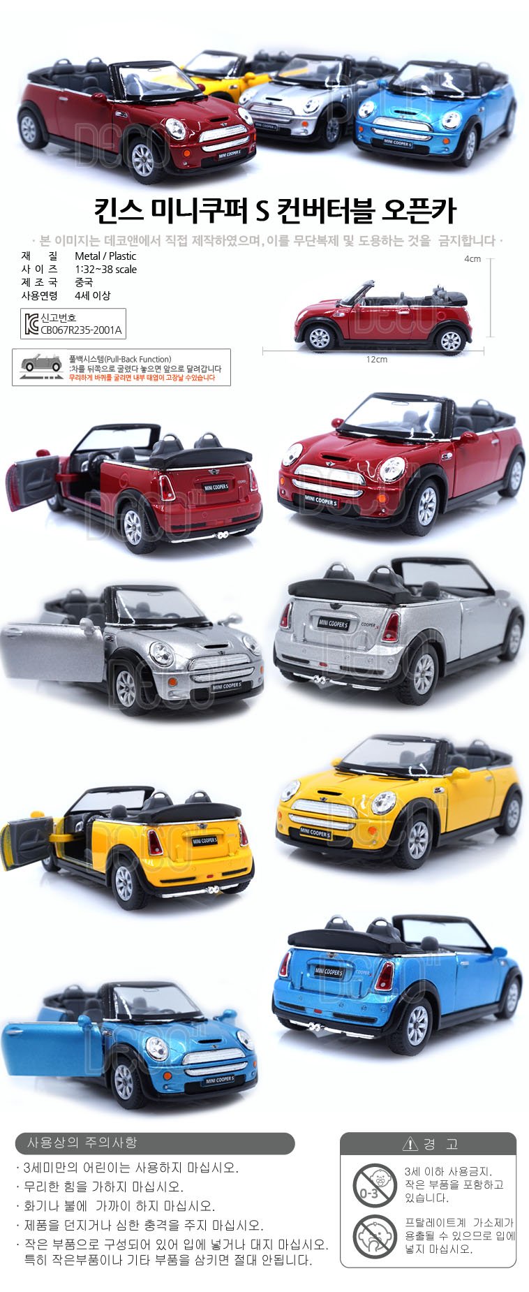 Deco & Mini Cooper S Convertible Open Car Mini Car Pullback Diecast Model / 데코앤 미니쿠퍼 S 컨버터블 오픈카 미니카 풀백 다이캐스트 모형