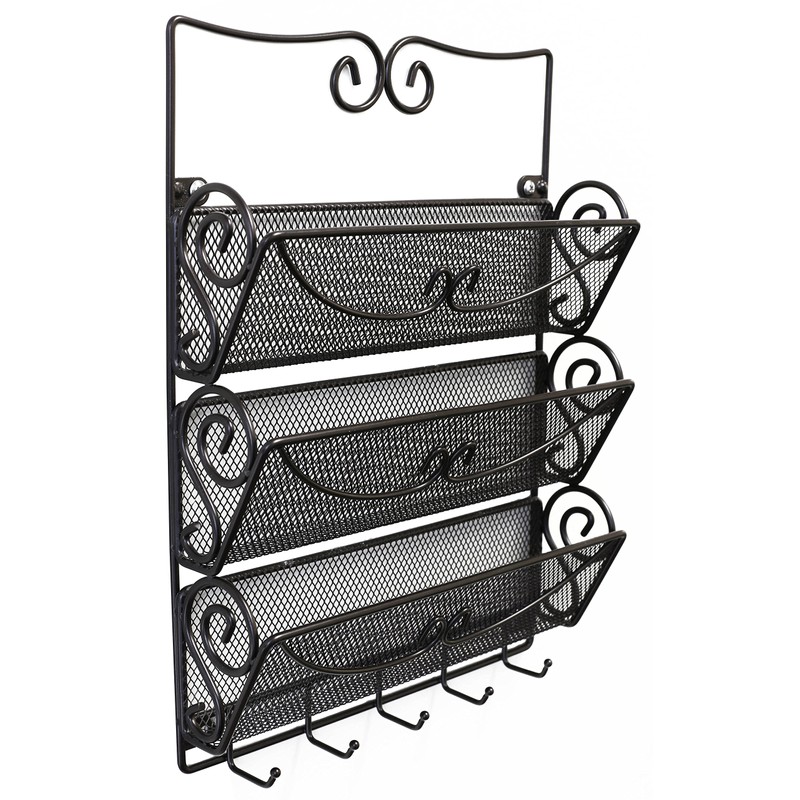 DecoBros Wall Mount 3 Tier Letter Rack Organizer w/Key Holder, Bronze