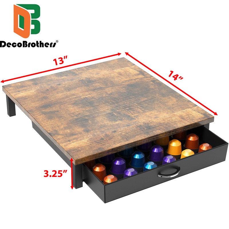 DecoBrothers Wooden Coffee Pod Drawer Compatible with 42 Nespresso Original Line Capsules, Rustic Brown
