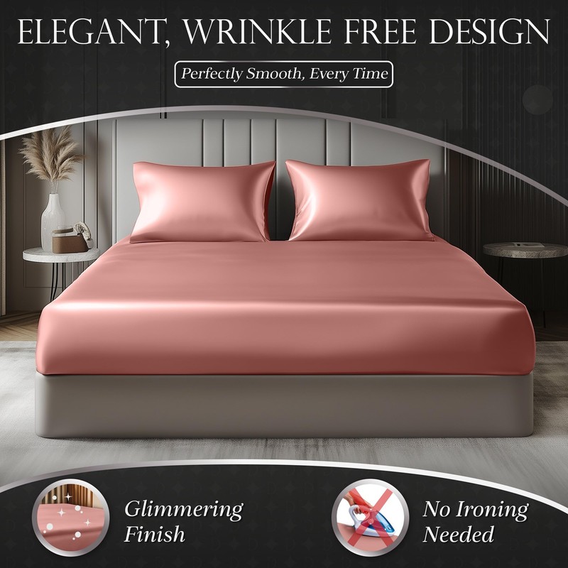- GENTLE, SILKY CARE: Indulge your hair and skin with our luxurious blush pink satin fitted bed sheet. Our satin sheet queen minimizes friction, preventing breakage, frizz, and wrinkles, so both you and your bed wake up loofull refreshed and radiant every morning