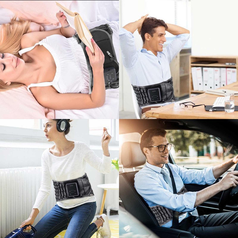 - 【Suitable for Different Waist Sizes】Length can be adjusted by the included extension pad, suitable for 29-49 inch waist, easy to wear, fit for most ages. This lumbar decompression belt can be used anytime and anywhere when fully charged, suitable for use at work, while driving and doing housework.