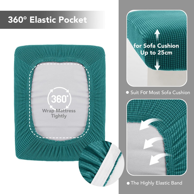 Deconovo Sofa Cover Seat Cushion Cover Modern Stretch Living Room Sofa Seat Cover Thick Furniture Protector 2-Seater (114 x 55 x 20 cm), Turquoise