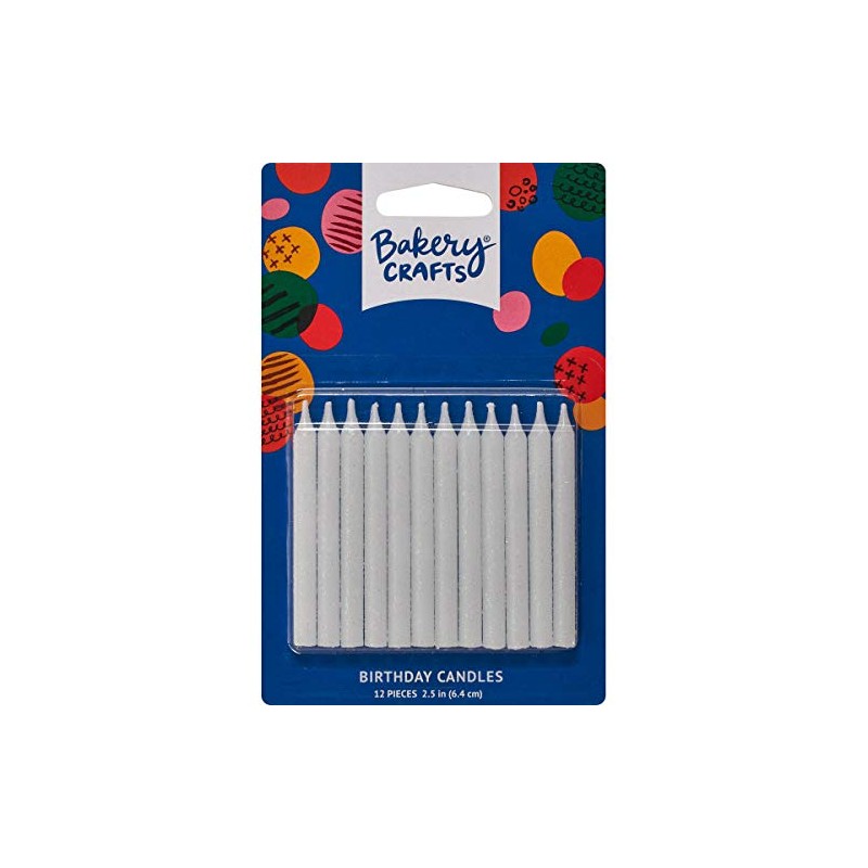 DecoPac Birthday Candles 2-1/2 Inch, 12 Pieces White Glitter