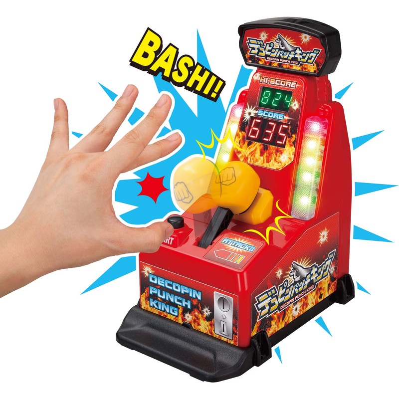 Aim for the king of punching games with Decopin. A punching game that focuses on finger flicking to compete for scores. Press the start button and flick your fingers on the target for the score to appear on the score screen. If the score is a high score, it will also be displayed on the high score screen. You can compete for the highest score, or compete in different techniques with the 2 included cards. (Set contents) Main unit: 1 unit. Scorecard: 10 pieces. Mission cards: 10 pieces. Product size: W 4.6 x D 6.9 x H 8.7 inches (W 117 x D 174 x H 220 mm). Package size: W 6.1 x D 8.3 x H 9.6 inches (W 155 x D 210 x H 245 mm). Recommended Ages: 6 years and up. Batteries: 3 x AA batteries (not included).