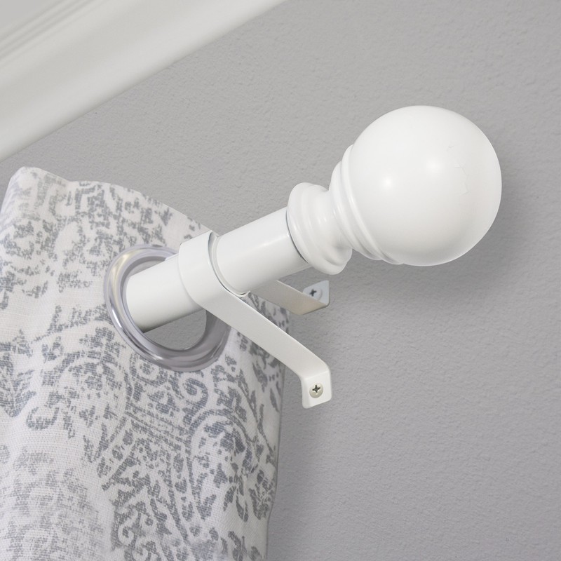 Put the focus on finish with this adjustable curtain rod set with Ball finials. The understated styling with rich finish color will compliment a variety of home decor. Metal construction one inch diameter drapery rods and matching metal mounting brackets provide durability and support for your drapery panels. Adjustable telescoping rod design allows for a custom fit, available in sizes 18-36”, 36-72”, and 72-144”. available in silver, White, bronze and black finishes.