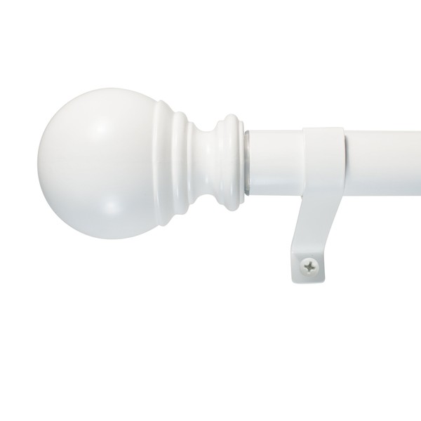 Decopolitan 30409-WT72 1” Ball Single Telescoping Drapery Rod Set, 72 to 144-Inch, White