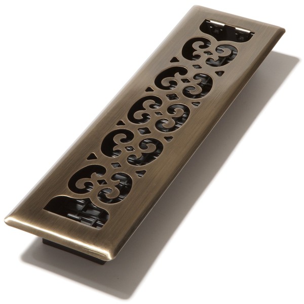This Decor Grates 2-Inch by 12-Inch scroll floor register has an antique brass finish (2mm metal). Decor Grates floor registers are built with the finest materials. Each and every register goes through a quality assurance process to ensure your satisfaction. Our classic designs will enhance any rooms decor and give you years of trouble free operation. Our family owned company takes great pride in making sure you are totally satisfied with your purchase.