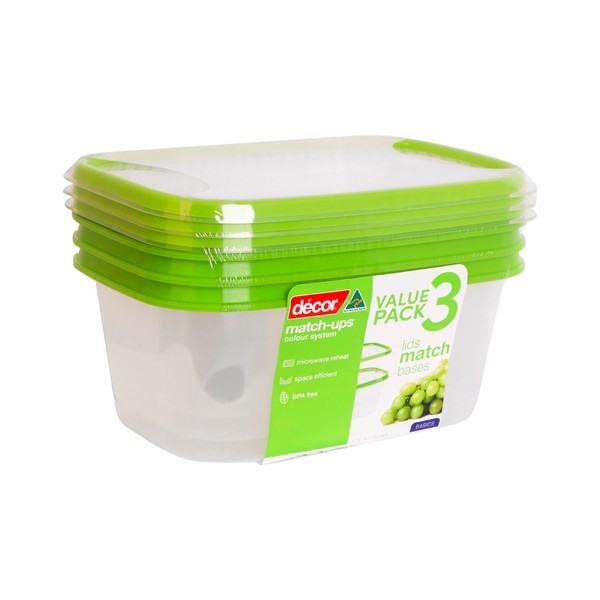 Décor Match-Ups Basics Oblong Storer, Green, 1.5 Litre Capacity (Pack of 3)