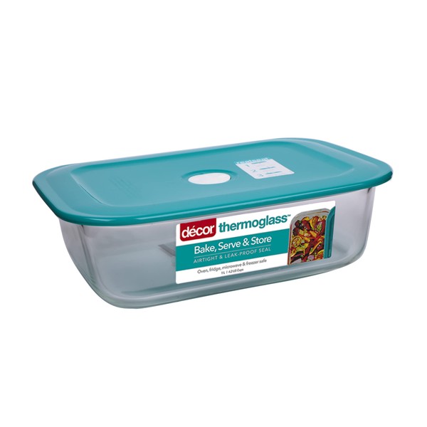 Decor Thermoglass Realseal Oblong Baking Dish with Lid, 1 Litre Capacity