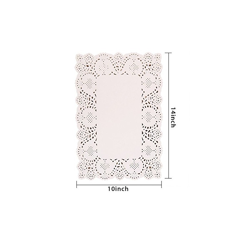 - Package includes 200 pieces 10X14 inch white rectangle food grade paper lace doilies.