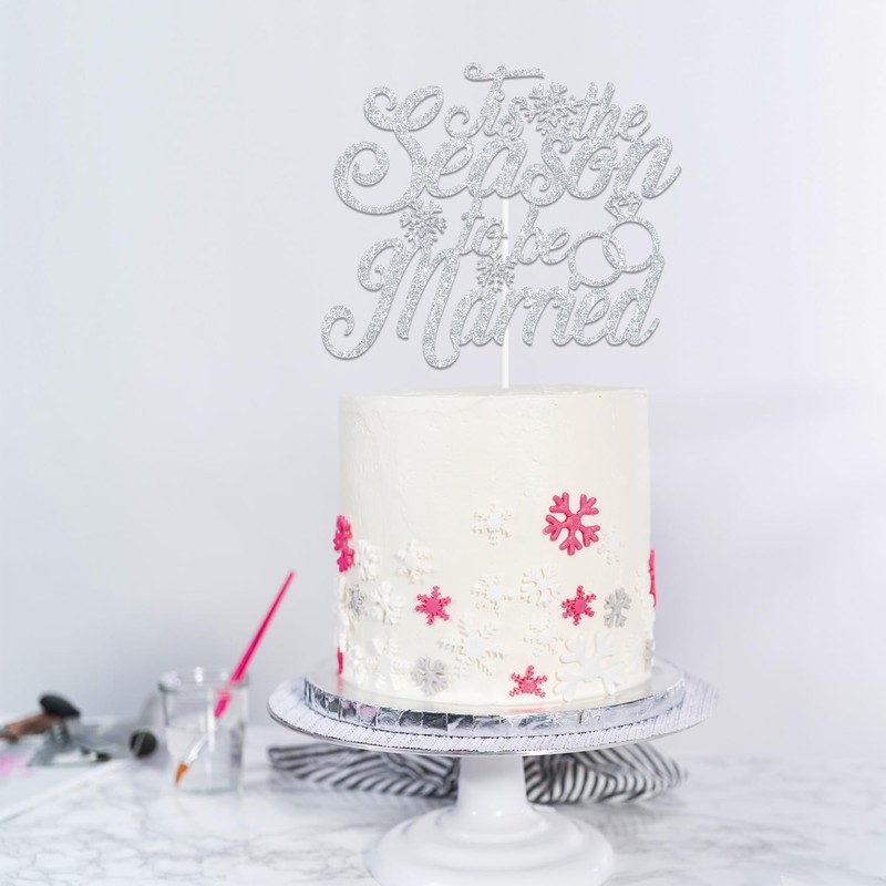 Decoración de pastel con purpurina plateada para la temporada para casarse, nieve en el amor/copo de nieve, con temática de nieve de invierno, suministros de decoración para bodas, aniversarios y fiestas